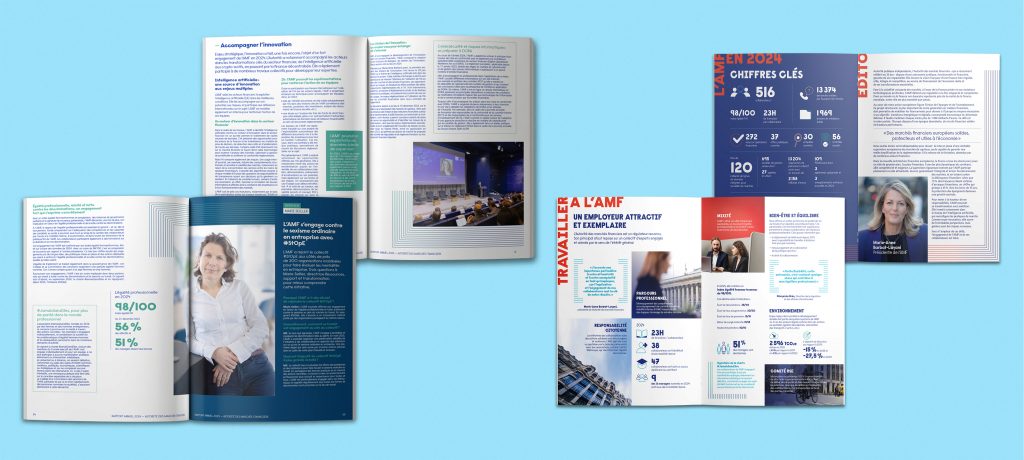 L’AMF souhaitait moderniser et dynamiser sa plaquette institutionnelle et son rapport annuel, supports stratégiques traditionnellement présentés aux plus hautes instances de la République ainsi qu’à la presse.